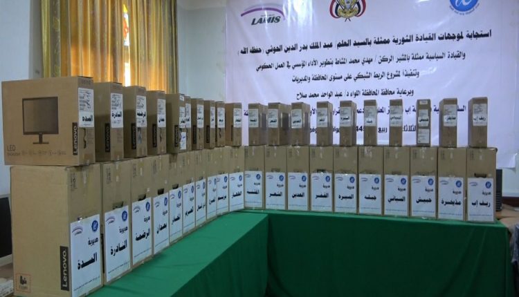 وأوضح أمين عام المجلس المحلي للمحافظة أمين علي الورافي, أن المشروع يأتي ترجمة لموجهات قائد الثورة ورئيس المجلس السياسي الاعلى بتطوير الأداء المؤسسي في العمل الحكومي .. مبينا أن المرحلة من المشروع تتضمن توزيع أجهزة الكمبيوتر والتجهيزات اللازمة للمديريات، ونزول الفرق الفنية لتنفيذ أعمال الربط الشبكي لكل مديرية .