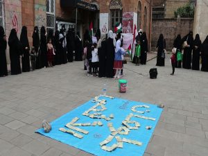 واستنكرت المشاركات في الوقفة الصمت الأممي المعيب وخنوع الأنظمة العربية العميلة حيال ما يرتكبه الكيان الصهيوني من جرائم إبادة بحق الشعب الفلسطيني في غزة وفي مقدمته النساء والأطفال.