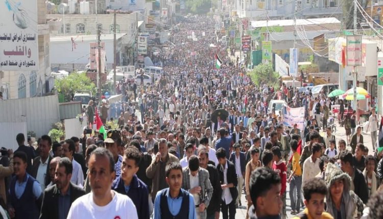 شاهد بالصور : مسيرة جماهيرية حاشدة في مدينة إب دعما لخيار حركات المقاومة وصمود الشعب الفلسطيني ..