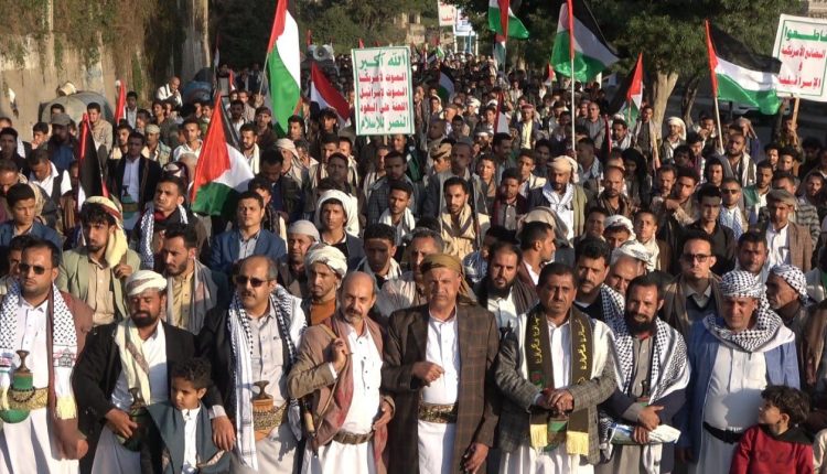 شهدت محافظة إب بعد عصر اليوم مسيرة جماهيرية حاشدة في جمعة ” مع فلسطين جاهزون لكل الخيارات ” ..