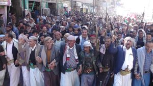 وشدد المشاركون في بيان مسيرتهم على ضرورة الاستمرار في العمليات البحرية والجوية للقوات المسلحة اليمنية دون توقف ضد الصهاينة حتى يتوقفوا عن عدوانهم ومجازرهم وحصارهم على غزة وأبنائها .. مثمنين تلك العمليات النوعية والمواقف الشامخة والعظيمة التي انتهجتها القيادة الثورية اليمنية لنصرة الشعب والمقاومة الفلسطينية.