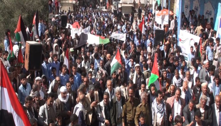 واكد المشاركون في المسيرة بحضور مدير المديرية محمد المريسي ، استعدادهم وجهوزيتهم لاي احتمالات او مواجهات مع الامريكان وهي معركة طالما ارادها هذا الشعب العظيم .. مشددين في بيان مسيرتهم على تمسكهم بموقفهم المبدئي والثابت مع الشعب والمقاومة الفلسطينية واستعدادهم للمواجهة المباشرة ضد العدو الصهيوني .. مجددين الدعوة لكل الدول المحاددة لفلسطين بتوفير ممر آمن لأحرار الشعب اليمني الذين سيتوافدون بمئات الالاف إلى فلسطين لمساندة ابناء الشعب الفلسطيني ومواجهة مليشيات الكيان الصهيوني وطردهم من فلسطين المحتلة ..