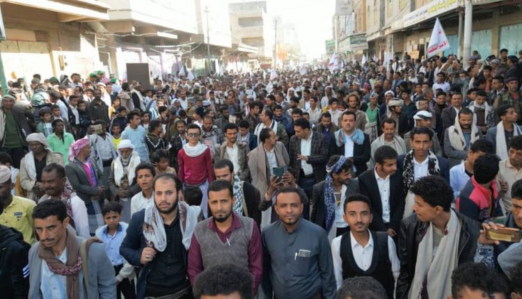 إب : أبناء ذي السفال والسياني يحتشدون في مسيرة “معكم حتى النصر والأمريكي لن يوقفنا ” .