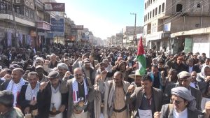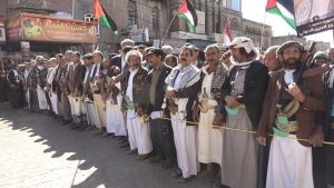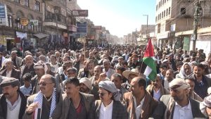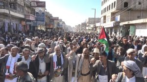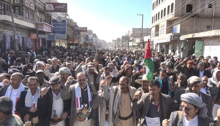 واوضح المشاركون في المسيرة أن استمرار الإجرام والإبادة الصهيونية بحق ابناء غزة يدل على مدى الحقد المتجذر لدى الكيان الصهيوني والوحشية الامريكية التي تدعم وتشارك في هذا الإجرام .. مشيرين في بيان مسيرتهم إلى أن الشعب اليمني ومن منطلق هويته الإيمانية ومبادئه القرآنية، مصممٌ على المضي في انشطته السياسية والعسكرية والتعبوية والإعلامية والثقافية لنصرة فلسطين قولا وعملا ..