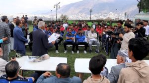 جاء ذلك خلال كلمته في اللقاء الموسع مع لاعبي و أعضاء بعثة المنتخب الوطني للناشئين الذي اقيم اليوم في باحة منتجع مدينة إب ، حيث جدد المحافظ صلاح ترحيبه باسم المكتب التنفيذي واعضاء السلطة المحلية بكل اللاعبين والإداريين في المنتخب الذين حلوا ضيوفا كراما على هذه المحافظة في إطار برنامج زياراتهم الذي يشمل العديد من المحافظات اليمنية .. معلناً تقديمه مبلغا ماليا دعما للمنتخب وتشجيعا وتقديرا لما حققه للكرة اليمنية في غرب أسيا ..