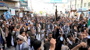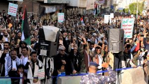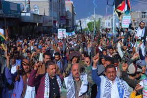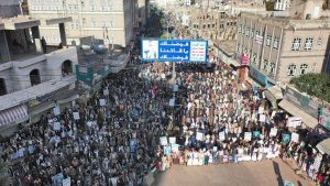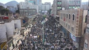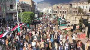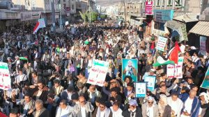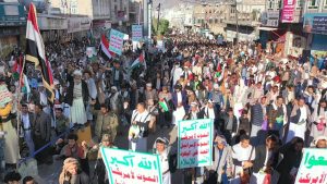 وانطلقت المسيرة التي تقدمها محافظ المحافظة عبدالواحد صلاح ومشرف المحافظة يحيى اليوسفي وعدد من أعضاء مجلسي النواب والشورى ، من ساحة الرسول الأعظم إلى شارع الثلاثين ، وسط هتافات الحشود الغفيرة المنددة بالعدوان الامريكي والمتوعدة بالرد المؤلم والمفوضة للقيادة الثورية باتخاذ الخيارات المناسبة لنصرة الشعب الفلسطيني ..