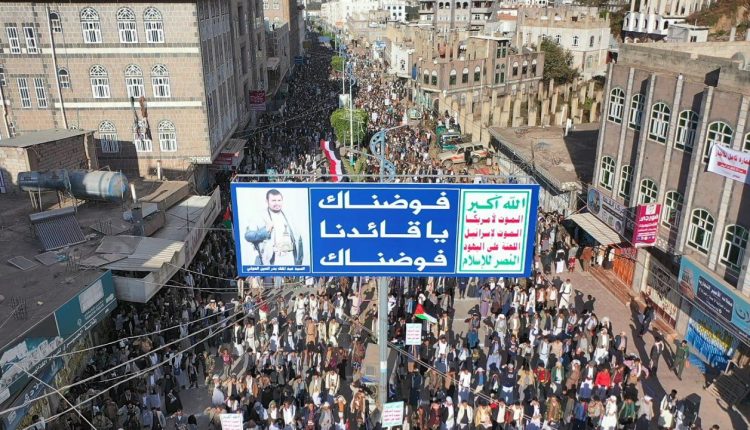 وكان مشرف المحافظة قد ألقى كلمة حيا فيها الحشود الواسعة والكبيرة التي قامت بتلبية دعوة السيد القائد للخروج بهذه المسيرة الحاشدة التي تزامنت مع ذلك الإعتداء الامريكي على قواتنا البحرية وارتقاء عشرة من الشهداء في هذا الإعتداء .. مؤكدا أن القضية الفلسطينية كانت ولازالت وستظل القضية المحورية والأساسية لهذا الشعب وقيادته الثورية العظيمة ولهذا كان اليمن وقيادته ملبين لنداء الدين والأخوة في الدخول المباشر والقوي مع إخواننا في غزة ضد الصهاينة المجرمين ..
