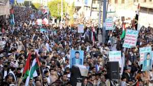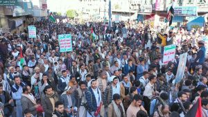 و أعلن المشاركون في المسيرة عن استعدادهم وجهوزيتهم الكاملة لخوض معركة الدين والكرامة جنبا إلى جنب مع أخواننا في القوات المسلحة معتمدين على الله ومتوكلين عليه .. مجددين في بيان مسيرتهم الذي تلاه وكيل المحافظة عبدالفتاح غلاب ، المطالبة للدول المجاورة بفتح ممرات برية آمنة ليتمكن شعبنا اليمني المجاهد من التحرك إلى فلسطين لنصرة وإسناد الشعب الفلسطيني ومواجهة اليهود المجرمين الذين يمارسون ابشع صنوف الإجرام والحصار بحق أبناء غزة ..