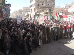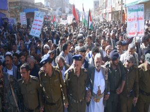 ودعا المشاركون إلى الاستمرار في الفعاليات والمسيرات المؤيدة للشعب الفلسطيني والقيادة الثورية اليمنية ومواصلة مقاطعة البضائع والمنتجات الإسرائيلية والأمريكية والبريطانية ..