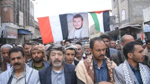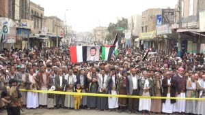 شهدت مدينة يريم بمحافظة اب اليوم مسيرة جماهيرية حاشدة لأبناء مديريات المربع الشمالي ” يريم ، السدة ، النادرة، الرضمة ، حملت عنوان ” ثابتون مع فلسطين .. وأمريكا أم الإرهاب “، استمرارا لنصرة الشعب والمقاومة الفلسطينية.