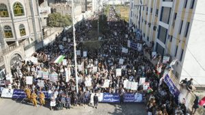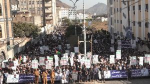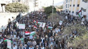 واكد المشاركون في التظاهرة الحاشدة ، ان الجرائم البشعة التي ينفذها الإحتلال الصهيوني بحق اخواننا في غزة وجرف وإحراق المخيمات والمستشفيات والمنازل حرب إبادة سيحاكم عليها الكيان الصهيوني المجرم .. مستنكرين في بيان وقفتهم الذي تلاه رئيس جامعة إب الدكتور نصر الحجيلي ، المواقف المتخاذلة والصمت المخزي للانظمة العربية والإسلامية وما تسمى منظمة التعاون الإسلامي وجامعة الدول العربية والهيئات العلمائية إزاء ما يتعرض له ابناء الشعب الفلسطيني المسلم ..