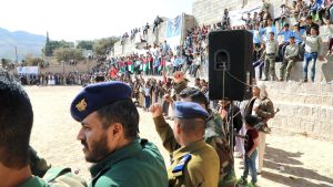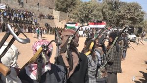نظم ابناء عزلتي المكتب والمعشار بمديرية جبلة محافظة إب ، اليوم وقفة قبلية تضامنا مع غزة وتفويضا للقيادة الثورية وتحت شعار ” اليمن وفلسطين خندق واحد ” …