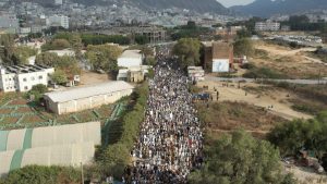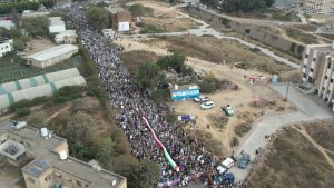 وأكد المحتشدون الذين تقدمهم مسؤول التعبئة العامة بالمحافظة يحيى اليوسفي وعدد من أعضاء مجلسي النواب والشورى ، أن المظاهرات والمسيرات والانشطة المناصرة لفلسطين وغزة مستمرة دون توقف وبزخم أكبر واوسع كونها جهادٌ في سبيل الله .. مباركين في بيان مسيرتهم الحاشدة الذي تلاه عضو مجلس النواب الدكتور علي الزنم ، تلك العمليات العظيمة والملاحم الاسطورية التي يسطرها المجاهدون في غزة وقصفهم لمدن محتلة ومنها ما تسمى ” تل أبيب ” بصواريخ المقاومة الشامخة ..