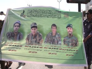 وسارت مواكب التشييع في شوارع المحافظة وصولا إلى روضات الشهداء في المديريات والمناطق التي ينتمي لها هؤلاء الابطال ..