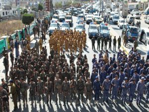 شيعت اليوم محافظة إب موكب جنائزي مهيب جثامين أربعة من شهداء منتسبي القوات الخاصة بأمن المحافظة الذين استشهدوا اثناء أدائهم لواجبهم المقدس في حفظ الأمن والإستقرار وهم في مهمة أمنية للقبض على مطلوبين للعدالة