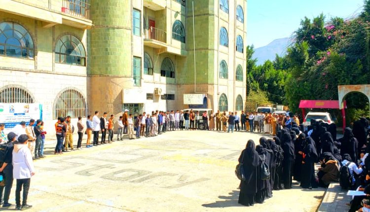 وقفة حاشدة بكلية طب الأسنان بجامعة إب تضامنا مع الشعب االفلسطيني