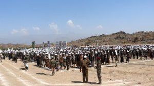 شاهد بالصور: عرض عسكري شعبي لالاف من خريجي مراكز التدريب والتعبئة في مديرية القفر بإب ..