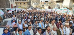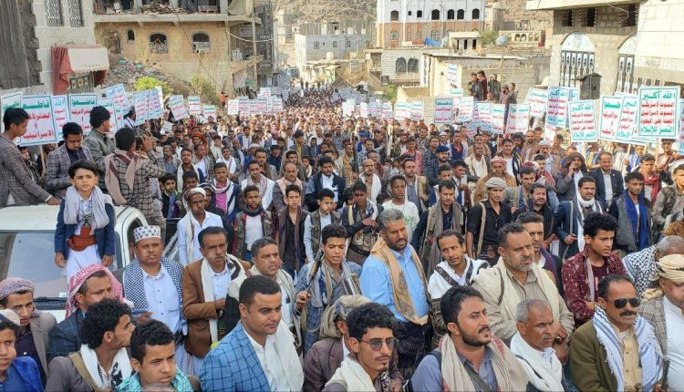 أبناء المربع الغربي بإب يحتشدون في جمعة ” لستم وحدكم .. صامدون مع غزة ” .