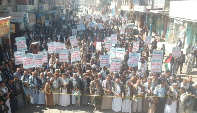 أبناء المربع الشمالي بإب يحتشدون انتصاراً لغزة وتأكيدا على استمرار الضربات الصاروخية ..