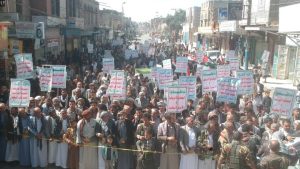 شهدت مدينة يريم بمحافظة إب ، اليوم تظاهرة حاشدة لأبناء مديريات المربع الشمالي ( يريم والسدة والنادرة والرضمة) في جمعة ” انتصارا لغزة .. ضرباتنا متصاعدة ” ..