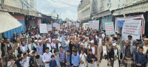 وأكدوا في مسيرتهم بحضور قيادة السلطة المحلية بالمديرية أن العدوان الأمريكي البريطاني لن يزيد هذا الشعب إلا عزيمة واصرارا للثبات على موقفه في إسناد الشعب الفلسطيني .. مشيرين في بيان مسيرتهم إلى أن الشعب اليمني على أتم الجهوزية والإستعداد لمواجهة الأمريكان والبريطانيين بكل قوة وثبات .. مجددين العهد لقائد الثورة بالمضي في هذا الموقف دون تراجع او تخاذل ومواصلة التحرك الشعبي في المسيرات والمظاهرات وأعمال التعبئة العامة ..