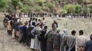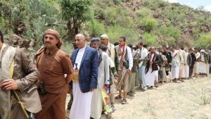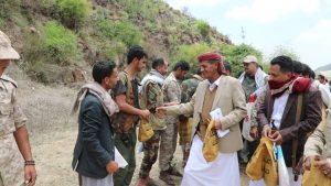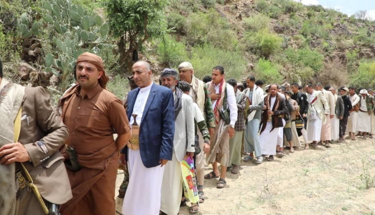 قيادات وشخصيات من المشنة بإب يزورون المرابطين في عدد من المواقع بالتعزية ..