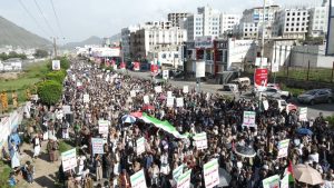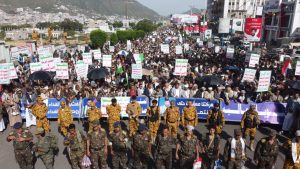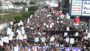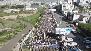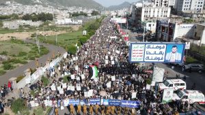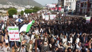 وثمن المحتشدون المواقف الإيجابية للشعوب والدول الأفريقية الساعية للتحرر من الهيمنة والجبروت الأمريكي وحرصها على طرد القواعد الأمريكية من بلدانها .. مشيدين باستجابة ابطالنا في القوات المسلحة بتوسيع عملياتهم البحرية الى المحيط الهندي .