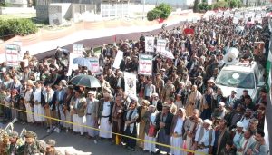وجدد المشاركون مطالبتهم المستمرة لفتح ممرات برية آمنة تتيح لأحرار ومجاهدي الشعب اليمني بالمشاركة المباشرة في المعركة جنبا إلى جنب مع اخواننا المجاهدين في فلسطين ضد العدو الصهيوني .. مشيدين في بيان مسيرتهم بالمواقف الإيجابية لعدد من الدول الافريقية ضد الهيمنة والإجرام الامريكي ..