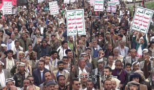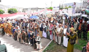 وأشاد بيان المسيرة بالصمود والثبات لابناء الشعب الفلسطيني ومجاهديه العظماء في وجه اعتى إجرام ووحشية على مدى التاريخ .. داعيا الشعوب العربية والإسلامية إلى العودة الصادقة نحو التربية الإيمانية الجهادية لحماية الامة والاجيال من الضياع والإنحلال ..
