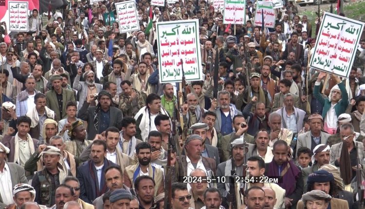 مسيرات حاشدة في المربع الشمالي بإب في جمعة التصعيد بالتصعيد مع غزة حتى النصر ..
