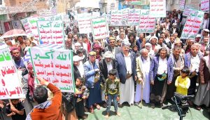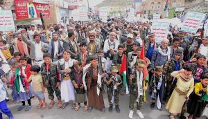 وردد المشاركون في المسيرة هتافات النصرة والثبات على الموقف مع غزة حتى يتحقق النصر ومواجهة تصعيد الصهاينة بتصعيد اكبر في البحر والبر ..