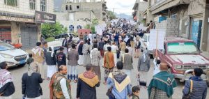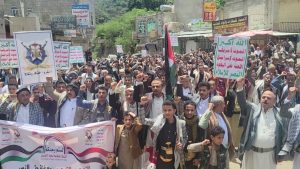 وفي مديرية حزم العدين ايضا خرجت مسيرتين في مركز المديرية وفي منطقة الجبجب بعنوان ” التصعيد بالتصعيد مع غزة حتى النصر ” ..