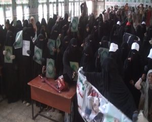 نظمت الهيئة النسائية الثقافية العامة بمحافظة إب فعالية خطابية ووقفات إحياءً للذكرى السنوية للصرخة وتضامنا مع أبناء غزة ومقاومتها الباسلة ومباركةً للجولة الرابعة من التصعيد ..