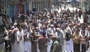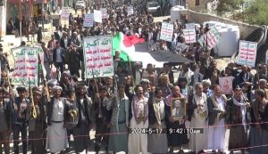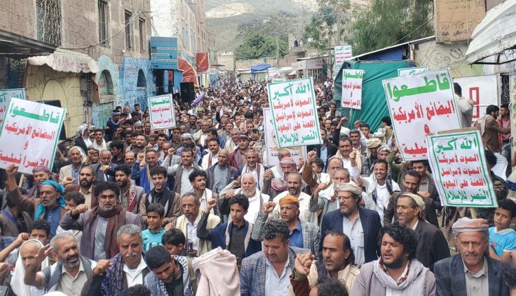 خرجت في مديرية يريم بمحافظة إب عصر يوم أمس الجمعة حشود جماهيرية حاشدة في مسيرة ” مع غزة جهادٌ مقدس ولا خطوط حمراء ” ..