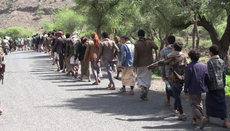 إب : مسير ومناورة عسكرية لخريجي التعبئة العامة والحشد الشعبي بعزلة بني سيف السافل في القفر ..