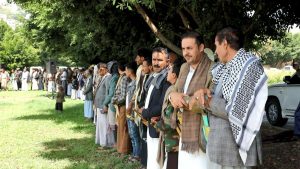 ولفت المشاركين إلى أن مؤسسات الدولة ستظل بفضل من الله وبتوجيه وإشراف القيادتين الثورية والسياسية ، الركيزة الاساسية للدولة وتكون عند المستوى المطلوب في خدمة المواطن ولن تسمح بوجود مثل هذه العناصر الخائنة في اوساط كوادرها الشرفاء الذين حافظوا على هذه المؤسسات في أحلك الظروف الصعبة ..
