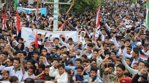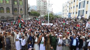 واستنكر المحتشدون المواقف المتخاذلة لمعظم الأنظمة العربية التي اتضح تواطؤها مع العدو الصهيوني وتنصلها عن المسؤولية والواجب الأخلاقي والديني والإنساني وعدم الوقوف إلى جانب الشعب الفلسطيني… مشددين في بيان مسيرتهم على أهمية استمرار دعم ومناصرة الشعب الفلسطيني استجابة لله والواجب الديني والإيماني والإنساني، في مواجهة الإجرام والإبادة والعدوان الصهيوني الأمريكي في الأراضي الفلسطينية المحتلة.