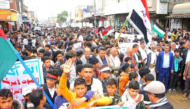 مسيرتان في يريم والشعر بإب تضامنا مع غزة وأسرى فلسطين ..