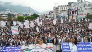 وطالب المشاركون في المسيرات، شعوب الأمة العربية والاسلامية إلى الانتصار للشعب الفلسطيني واسقاط هيمنة الأنظمة العميلة التي تتحرك وفق ما يخدم العدو الصهيوني والأمريكي في المنطقة، مرددين هتافات وشعارات مناهضة لأمريكا والصهاينة، واستمراراً لجرائمهم ومجازرهم الإرهابية في غزة والأراضي الفلسطينية المحتلة.