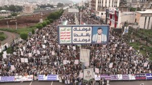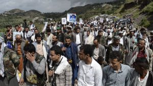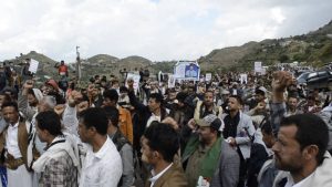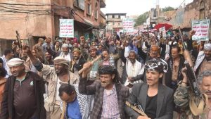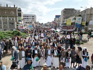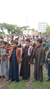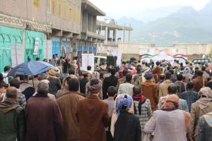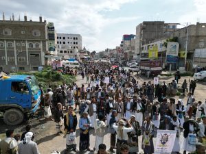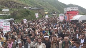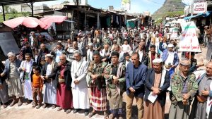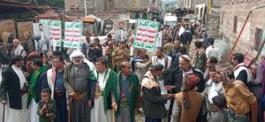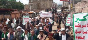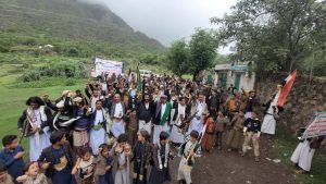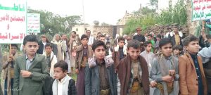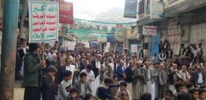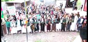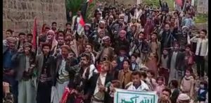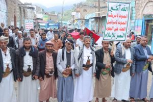 كما شهدت مديريات المربع الشمالي “يريم، السدة مسيرتين حاشدتين فيما خرجت مسيرتين في النادرة بمركز المديرية وفي منطقة العود ومسيرتان في الرضمة في مركز المديرية وفي عزلة كحلان “جدّد فيها المشاركون مطالبتهم بوقف العدوان على قطاع غزة منذ 322 يوماً، ومحاسبة مجرمي الحرب الصهاينة على جرائمهم الفاشية.
