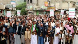 فقد احتشدت جموعٌ غفيرة في الساحة المركزية بمدينة إب ، تقدمهم محافظ المحافظة عبدالواحد صلاح وعدد من أعضاء مجلسي النواب والشورى ومسؤول التعبئة العامة عبدالفتاح غلاب ، ووكلاء المحافظة ، تعالت فيها اصوات المحتشدين تنديدا باستمرار الكيان الصهيوني في ارتكاب جرائمه ومجازره الوحشية بحق أبناء الشعب الفلسطيني قتلاً وعدواناً وحصاراً وإبادة وتدميراً في ظل استمرار الخذلان والتواطؤ والصمت العالمي والعربي.
