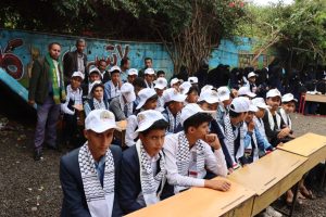 إلى ذلك نظم طلاب مدارس العزم الأهلية وقفة تضامنية مع غزة والأقصى ضد الكيان الصهيوني المحتل والأمريكي وما يرتكبوه من جرائم وحشية في حق المدنيين من أبناء قطاع غزة .