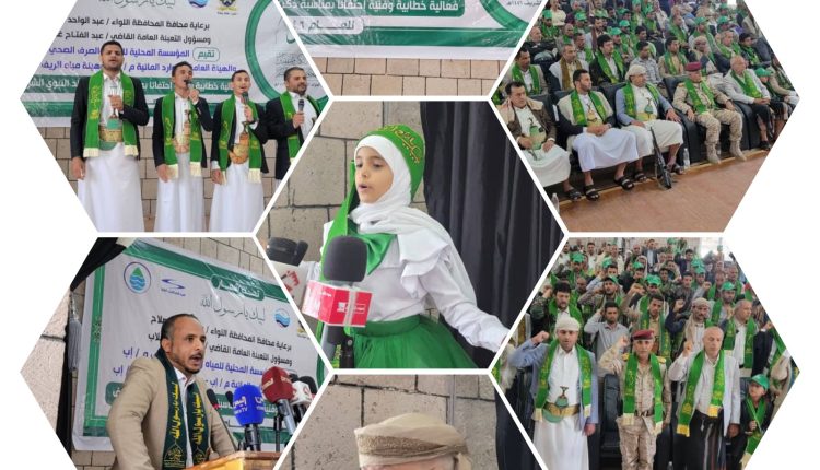 نظمت المؤسسة المحلية للمياه والصرف الصحي والهيئة العامة للموارد المائية وهيئة مياه الريف بمحافظة إب اليوم، فعالية خطابية وفنية احتفاء بمناسبة قدوم المولد النبوي الشريف على صاحبه وآله أفضل الصلاة وأتم التسليم .