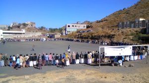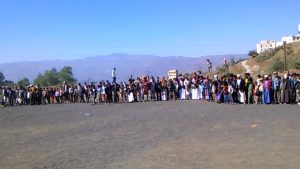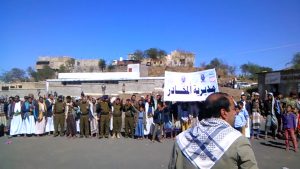 أعلن ابناء مديرية المخادر بمحافظة إب النفير العام للجبهات ضد العدوان الذي يرتكب ابشع الجرائم بحق ابناء الشعب اليمني . وقال ابناء المخادر خلال وقفة حاشدها اليوم بحضور وكيل المحافظة راكان النقيب ان العدوان تجاوز كل الاخلاق والقيم وجعل من المدنين الامنين اهدافا حية لطائراته ، مستنكرين في بيان وقفتهم ما ارتكبته طائرات العدوان بحق اسرة كاملة في مديرية فرع العدين في جريمة بشعة يندى لها جبين الانسانية تضاف الى سلسلة المجازر والجرائم التي قام بها العدوان بحق ابناء الشعب اليمني على مدى قرابة عشرين شهرا على مرآى من كافة دول العالم . واكدوا ان مثل هذه الجرائم والمجازر لن تثني عزيمة اليمنين وصمودهم بل تزيدهم اصرارا وتحد على النصر والكرامة . داعين المجلس السياسي الاعلى وحكومى الانقاذ الى القيام بمهامهم الدستورية وواجبهم الوطني في تعزيز الجبهة الداخلية ووحدة الصف والصمود بوجه العدوان حتى تحقيق النصر من خلال اتخاذ اجراءات كفيلة بتخفيف معاناة الشعب اليمني . وحيا ابناء المخادر البطولات والتضحيات التي يبذلها ابطال الجيش واللجان في كافة ميادين الجهاد والتي مثلت الصخرة الصلبة تحطمت امامها اطماع ومؤامرات دول العدوان . حضر الوقفة مدير عام مديرية المخادر نبيل العواضي.