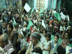 ،،،وفي حي المرور نُظمت أمسية خطابية وثقافية بحضور الوكيل القاسمي ومدير مديرية الشعر اشرف الصلاحي، تطرقت كلمات الامسية إلى مسارات وأهداف الاحتفال بهذه المناسبة الدينية العظيمة، تتويجا للارتباط بالرسول وآل بيته الأطهار وإيصال رسالة اليمنيين إلى أصقاع العالم بتمسكهم برسول الله ومواجهة أعداء الأمة والتصدي للمخططات التي تمس نبي الأمة وكتاب الله ومقدسات الإسلام.