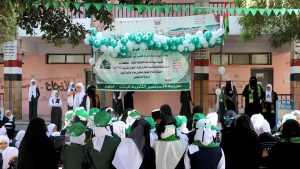 دشنت الهيئة النسائية الثقافية العامة بمحافظة إب المسابقة الثقافية بمناسبة المولد النبوي الشريف في عدد من المدارس بمديريتي الظهار والمشنة ..