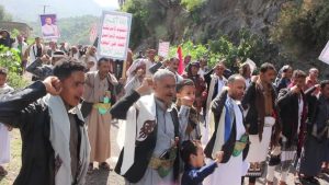 كما شهدت مديرية جبلة ثلاث مسيرات في الثوابي وكذا في جبل رعويين وايضا في الشهلي، اما مديرية حبيش فقد شهدت خمس مسيرات بمركز المديرية وفي المدورة والعارضة وفي الذارحي وفي سوق الربوع، فيما خرجت بمديرية السبرة مسيرة في منطقة أدمات ..