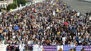 وجدد المشاركون في المسيرات التأكيد على الاستمرار في درب الجهاد دفاعا عن الوطن وإسنادا للأشقاء في فلسطين ولبنان في إطار معركة “الفتح الموعود والجهاد المقدس”.