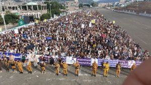 شاهد بالصور: ابناء محافظة إب يحتشدون في أكثر من (60) ساحة بمسيرات ” مع غزة لبنان صفٌ واحد كالبنيان ” .