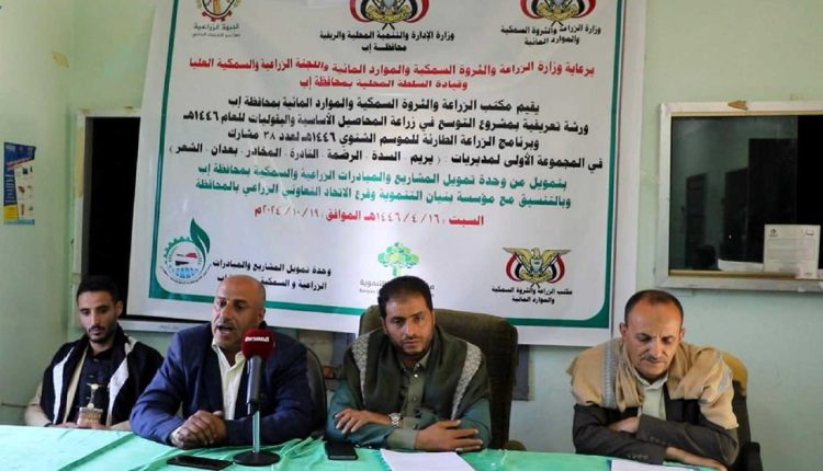 عُقدت بمحافظة إب اليوم ورشة تعريفية بمشروع التوسع في زراعة المحاصيل الأساسية والبقوليات للعام 1446هـ، وبرنامج الزراعة الطارئة للموسم الشتوي 1446هـ.